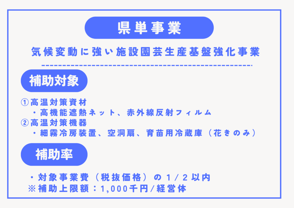 【県単事業】気候変動に強い施設園芸生産基盤強化事業